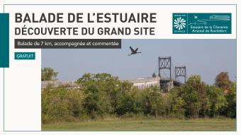 7 km à pied pour comprendre, observer, écouter et questionner le Grand Site de France par petits groupes avec en chemin des passionnés qui vous livreront leurs connaissances sur les paysages de l’estuaire de la Charente, sa faune, sa flore, son patrimoine.