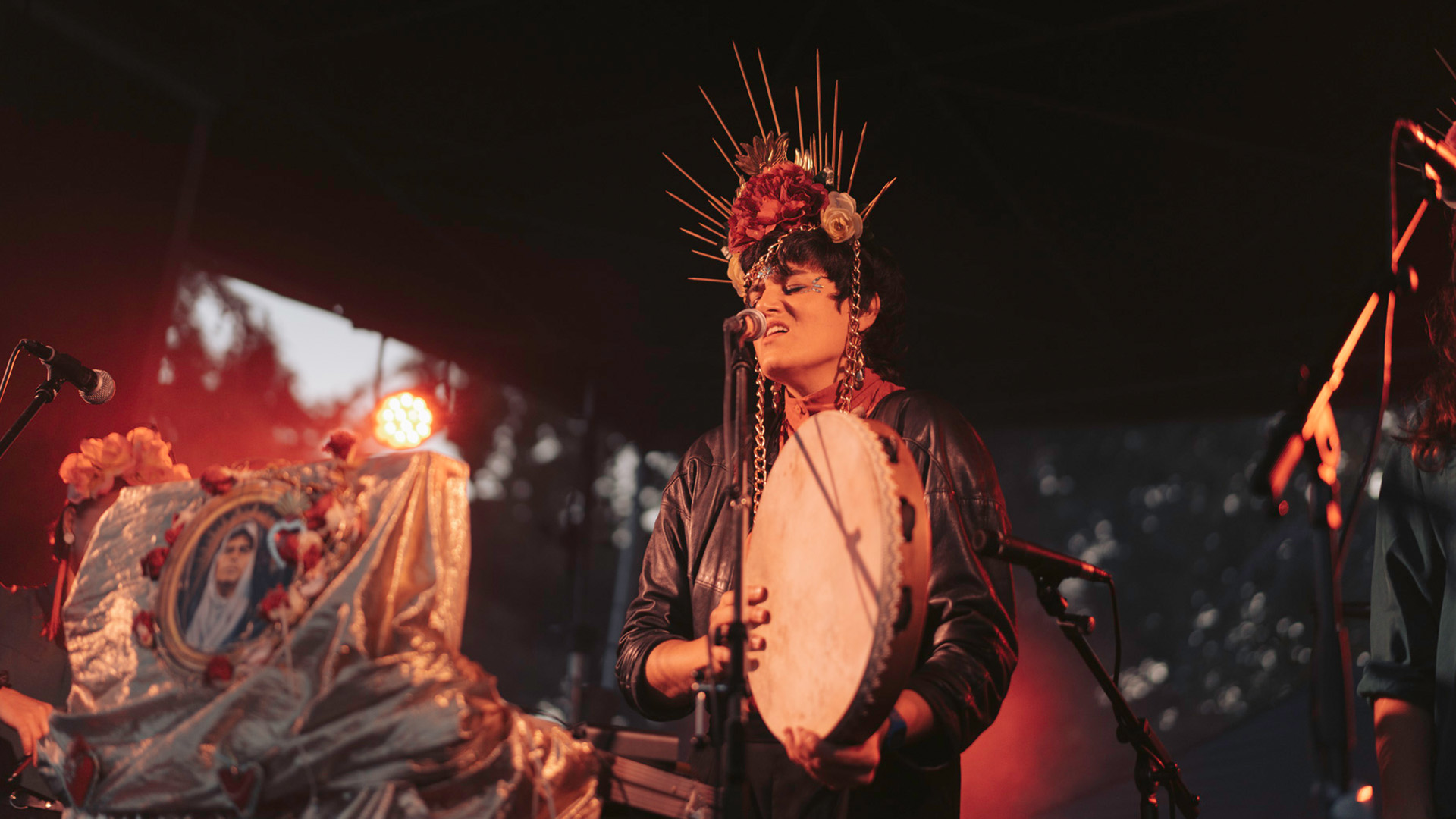 Le trio nous embarque pour un beau voyage onirique et nous fait découvrir une proposition artistique qui se veut une véritable lecture moderne des textes et rythmes de la tarentelle antique de l’Italie du Sud. Ce travail de réappropriation mélange instruments traditionnels (violon, tamburello, salentin) et pratiques électroniques donnant ainsi un aspect revivifiant au passé. Ce concert électrifié entraine le public. Il débute par des ballades amoureuses et s’achève sur des rythmes étourdissants où les mélodies entêtantes provoquent un véritable état de transe.
