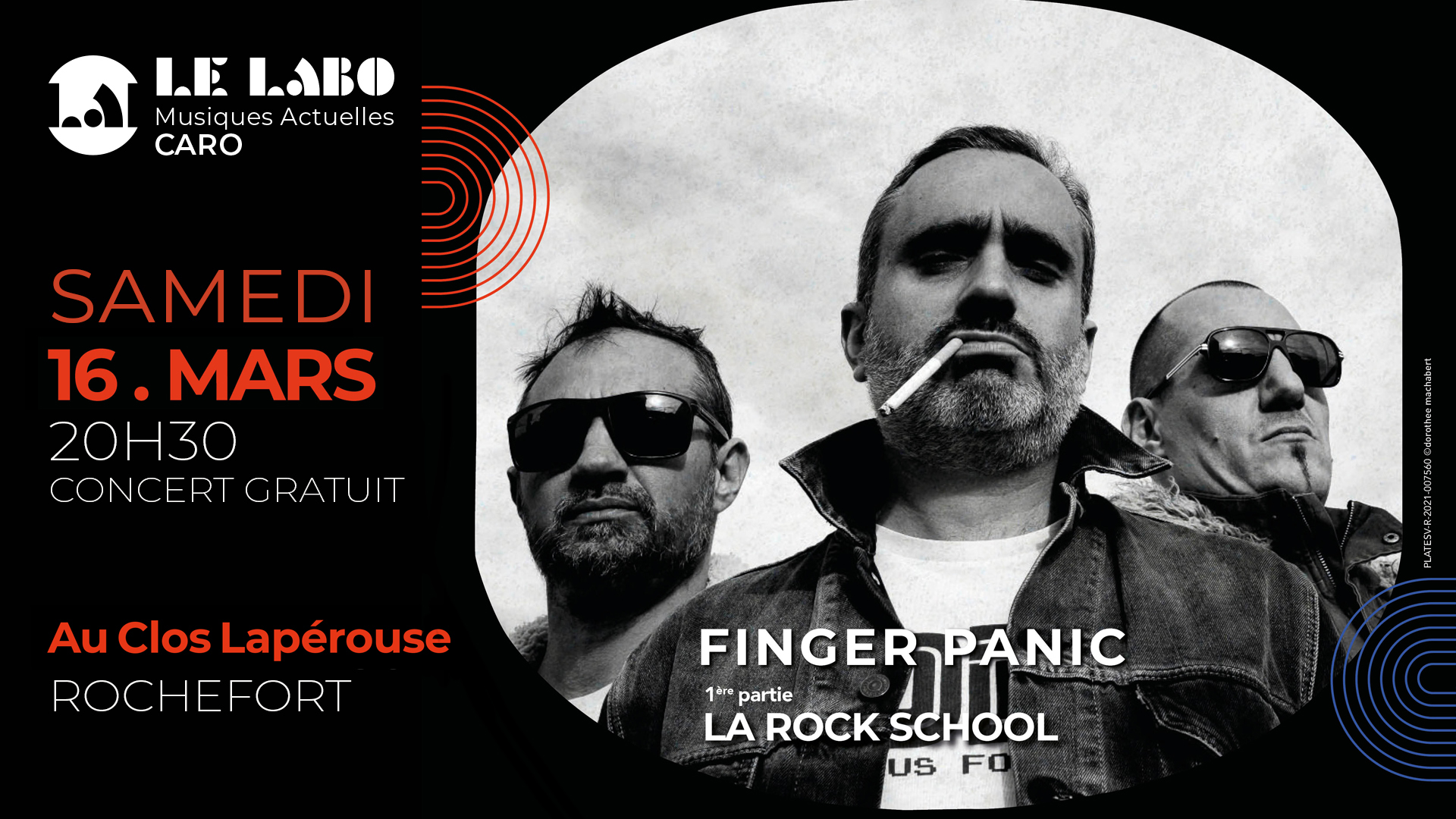Samedi 16 mars, le groupe rochefortais Finger Panic formé en 2018 proposera au public du Clos ses compositions aux mélodies proches du rock psychédélique et ses titres punk-rock. Le power trio (basse, batterie, guitare) se fait remarquer par son enthousiasme et son engagement scénique.