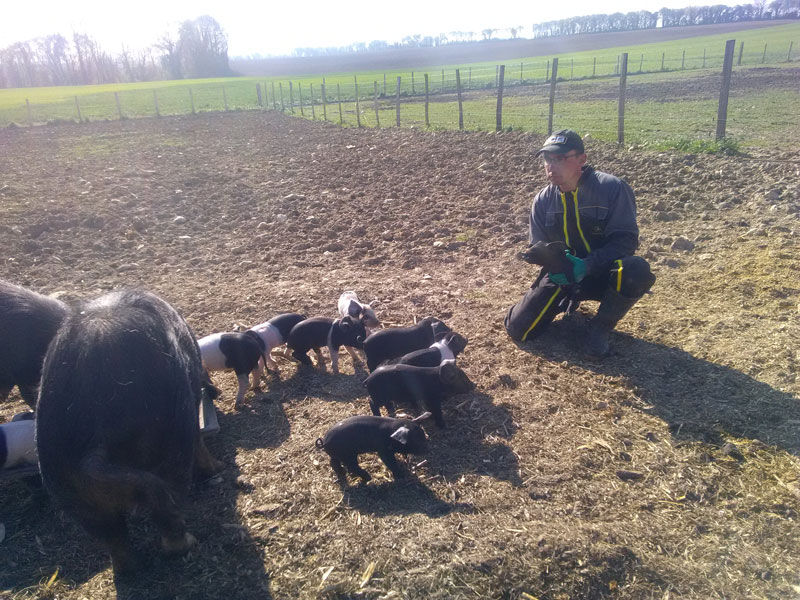 Les porcs sont nés, élevés dans la paille et nourris sur l’exploitation. Aucune intervention sur les animaux, autre que des soins, n’est pratiquée.