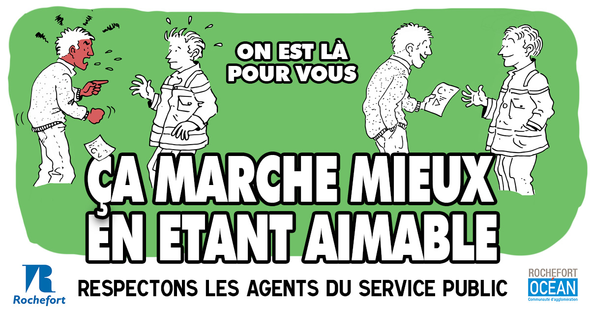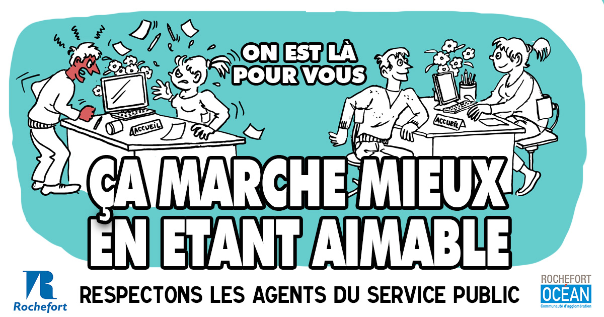 En avril, les accueils des équipements, de l'hôtel de communauté et de la ville de Rochefort, les déchèteries... afficheront clairement ce message on ne peut plus clair "Ça marche mieux en étant aimable, respectons les agents du service public".